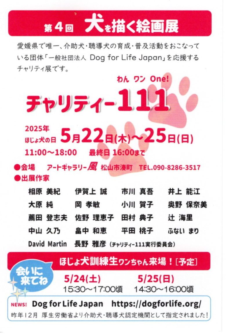 5月22日(補助犬の日)~5月25日 アートギャラリー風でチャリティ絵画展開催します